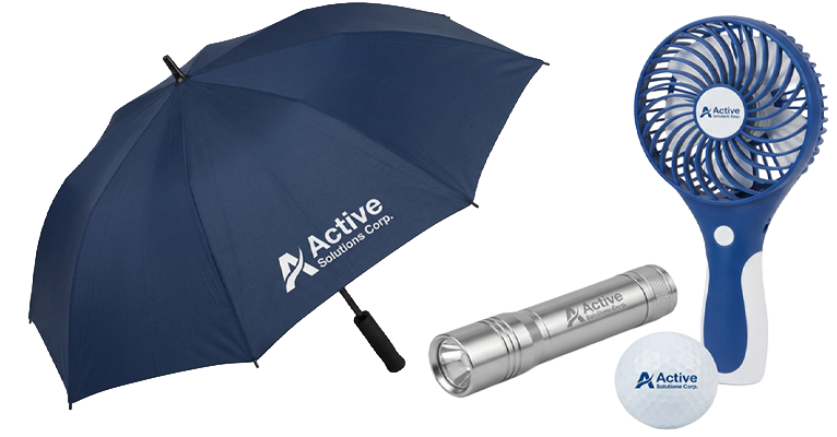 What branding methods work best on Active items like umbrellas, golf products, flashlights, fans, towels and fitness gear?